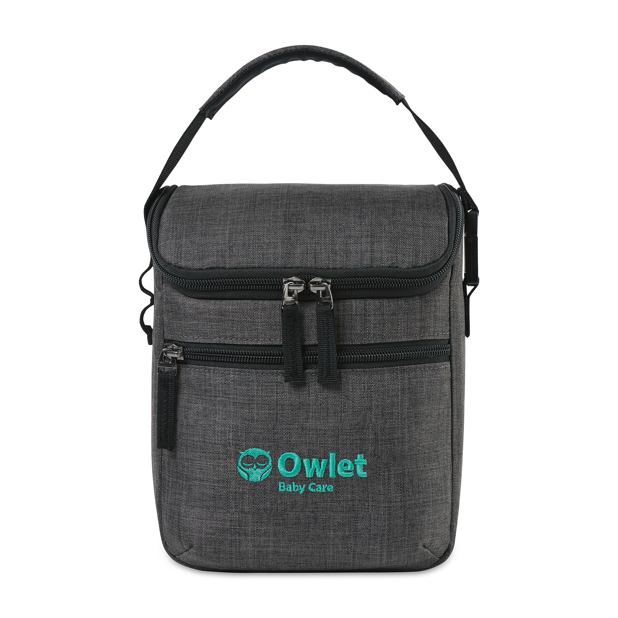 Keep bottles fresh on the go with the Reagan Baby Bottle Cooler. Designed to hold two bottles or sippy cups, it features a large zippered main compartment, front pocket for small essentials, and a padded handle with stroller attachment. Perfect for daycare, travel, or quick outings. Complies with CPSIA, Prop 65. 3.5″ W x 8.75″ H x 7.25″ L